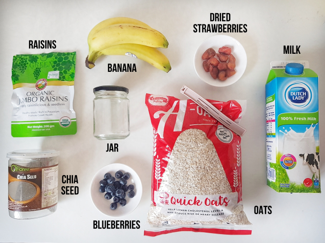 - Milk (Enough so that the milk covers slightly more than the oats in your jar)