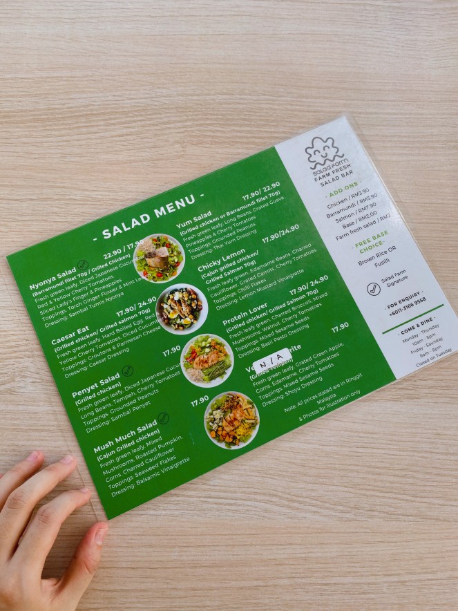 Despite the name Salad Farm, one would expect more vegetarian options. On my first glance, I couldn’t spot much vegetarian options (most dishes has meat for proteins) but they’re able to customize for you upon request. Just speak to the server & they’re more than happy to help.