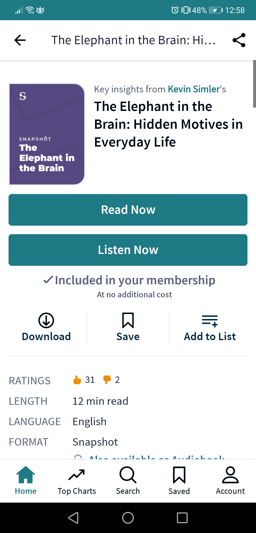 I noticed for some books they also offer Key Insights, which makes it easy for you to browse the key points of the book if you don’t feel like committing to it for hours. So it feels like the app ‘Shortform’ as well.