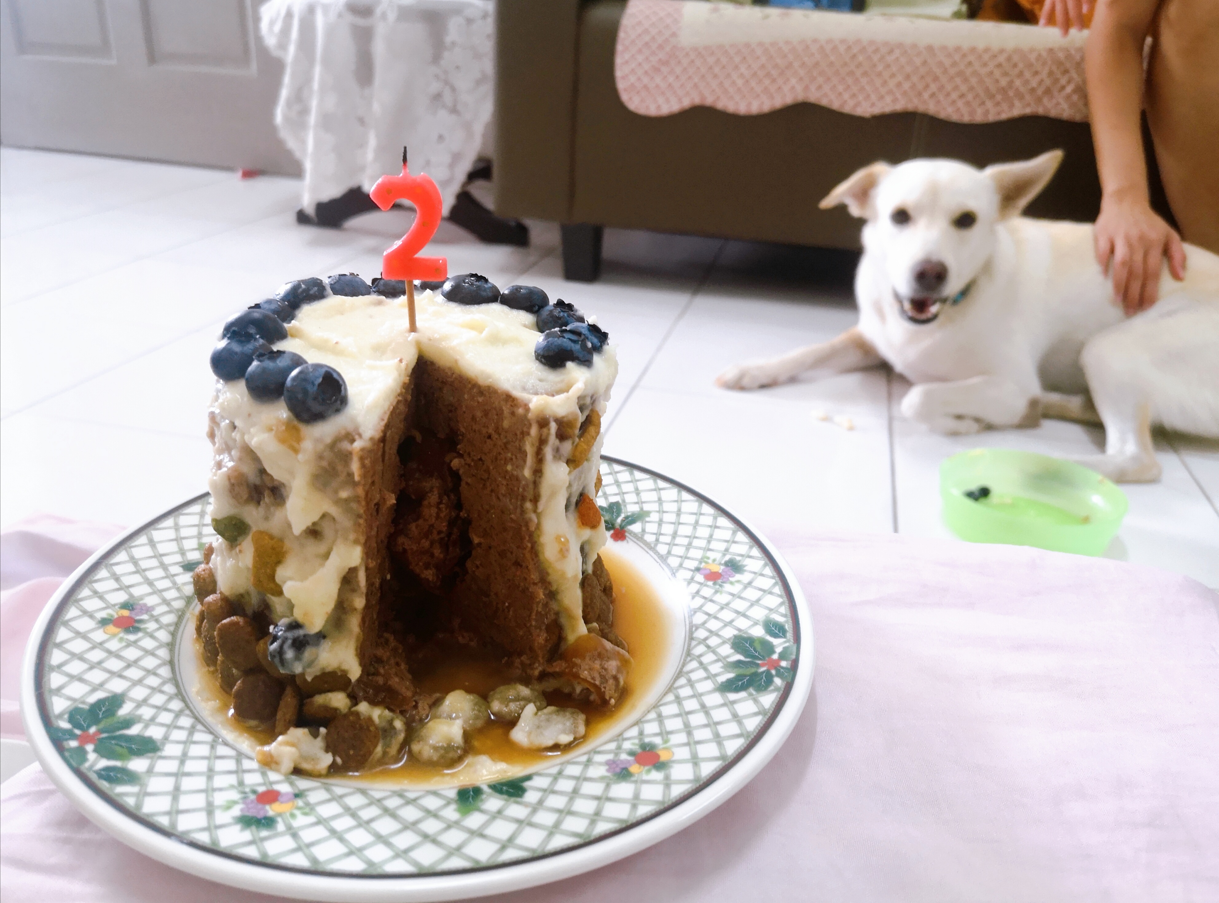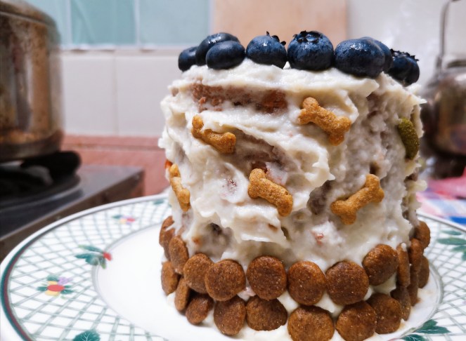 I made this last year for my dog’s birthday. Because I adopted her, it was the first birthday that we were celebrating together so I wanted to try out something different. But I didn’t have an oven, I’m not a good baker so I had to find some alternatives.