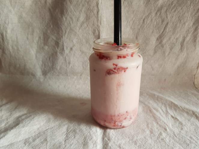 Strawberry milk was quite a treat growing up. I loved the artificial powdered Nesquik stuff (don’t judge) that my Mum used to make, and even to this day would choose strawberry milk when given a choice at the convenience store. So to find out I could make my own version was a , “Wait, I’ve never thought of that” moment for me.