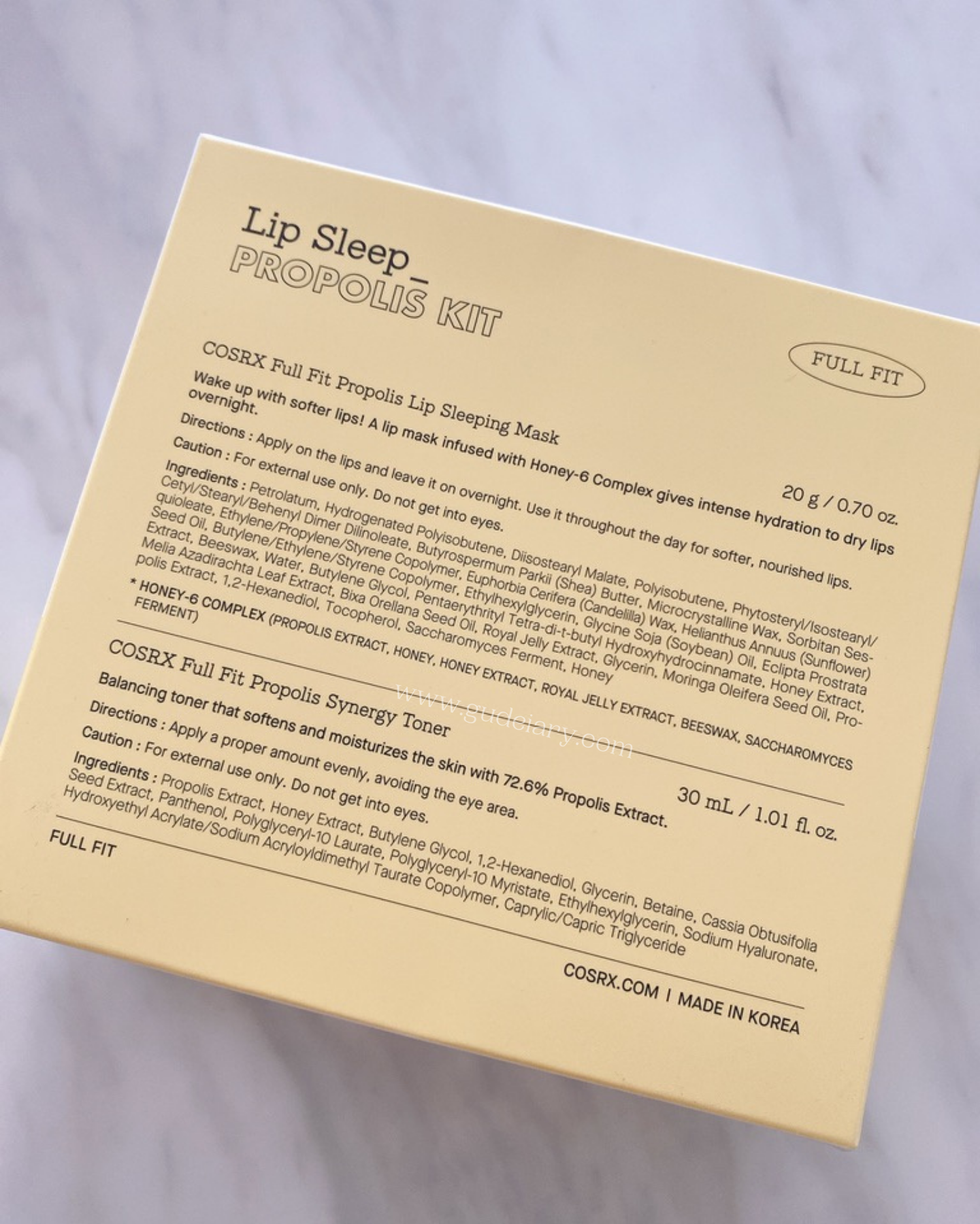 Formulated with propolis extract, this overnight lip treatment helps to nourish the lips, creating a protective veil to heal chapped/cracked lips when you sleep. The texture is slightly goopy as compared to the rest but not to the extent that it’s too sticky to apply to the lips. It doesn’t leave any sticky feeling & is actually quite comfortable on the lips! It is the most nourishing in their new lip mask range, which is a great pick-me-up for dry lips. It is not fragranced but has a slight hint of honey smell from its natural propolis extract. My sister has very sensitive, dry lips & she too enjoys this lip mask!