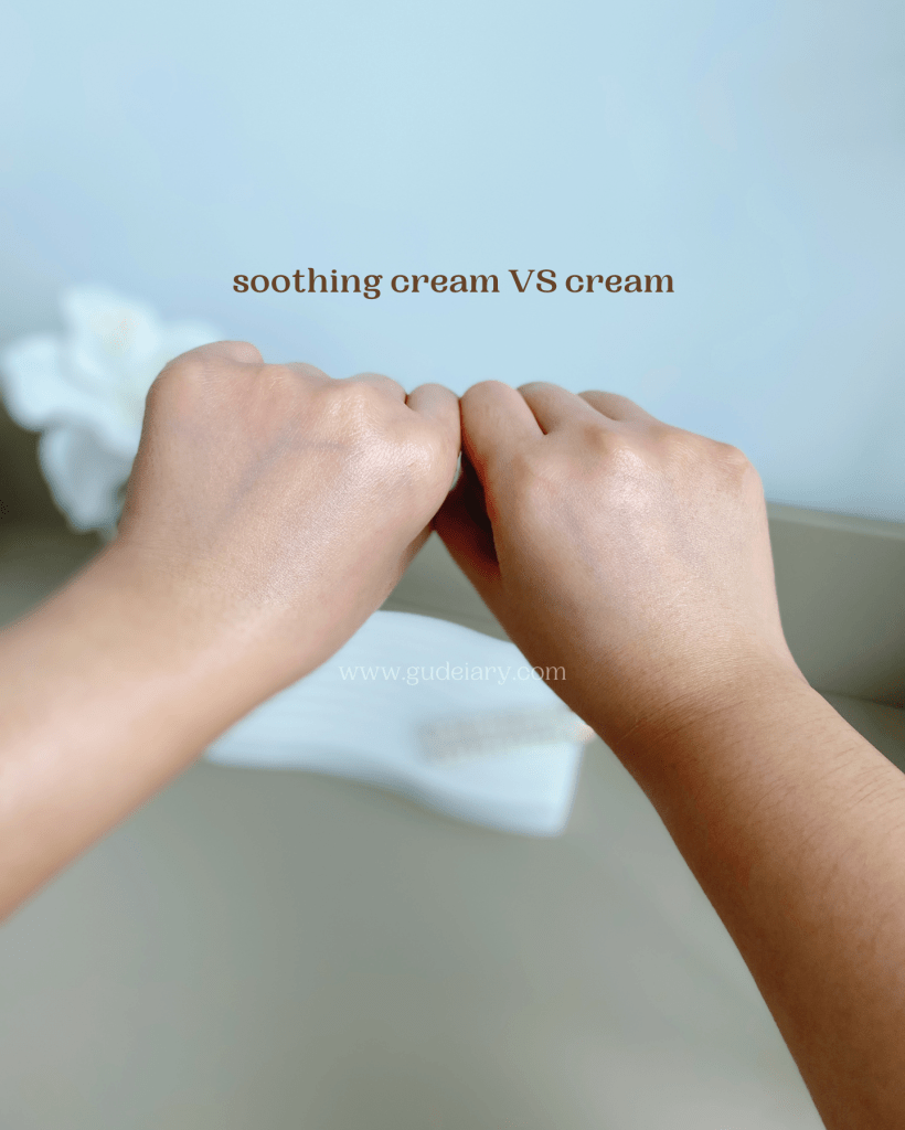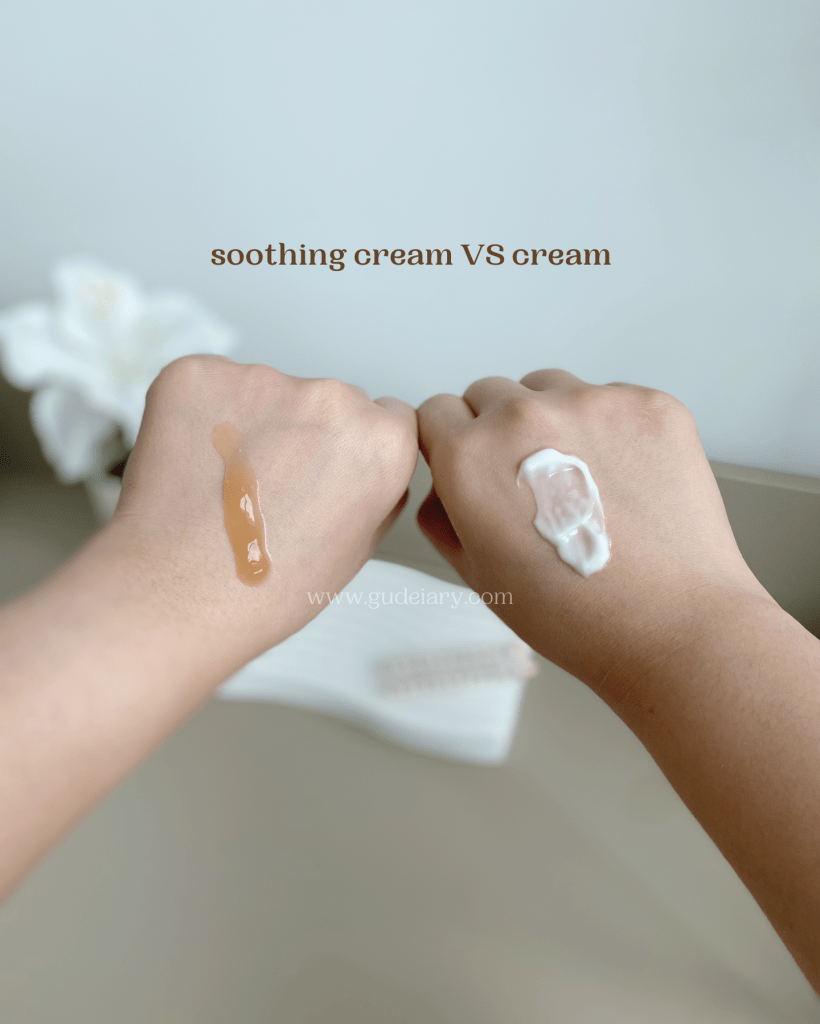 Texture – Centella Cream has a more occlusive creamy texture while the Soothing Cream is gel but with a slight weight to it